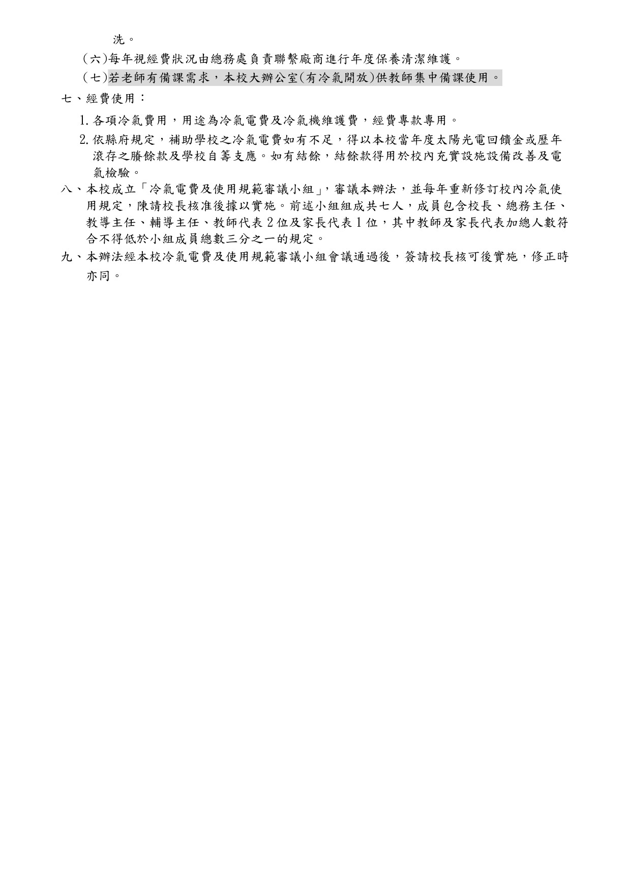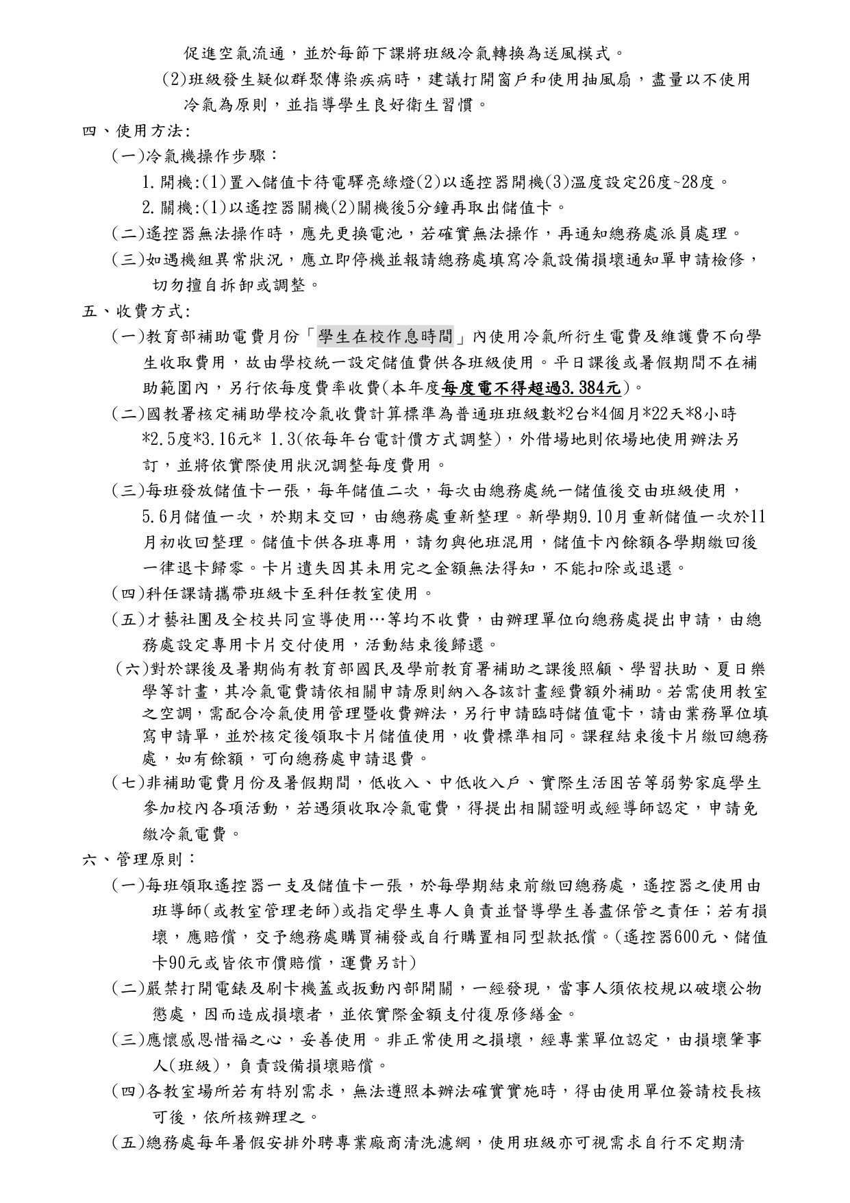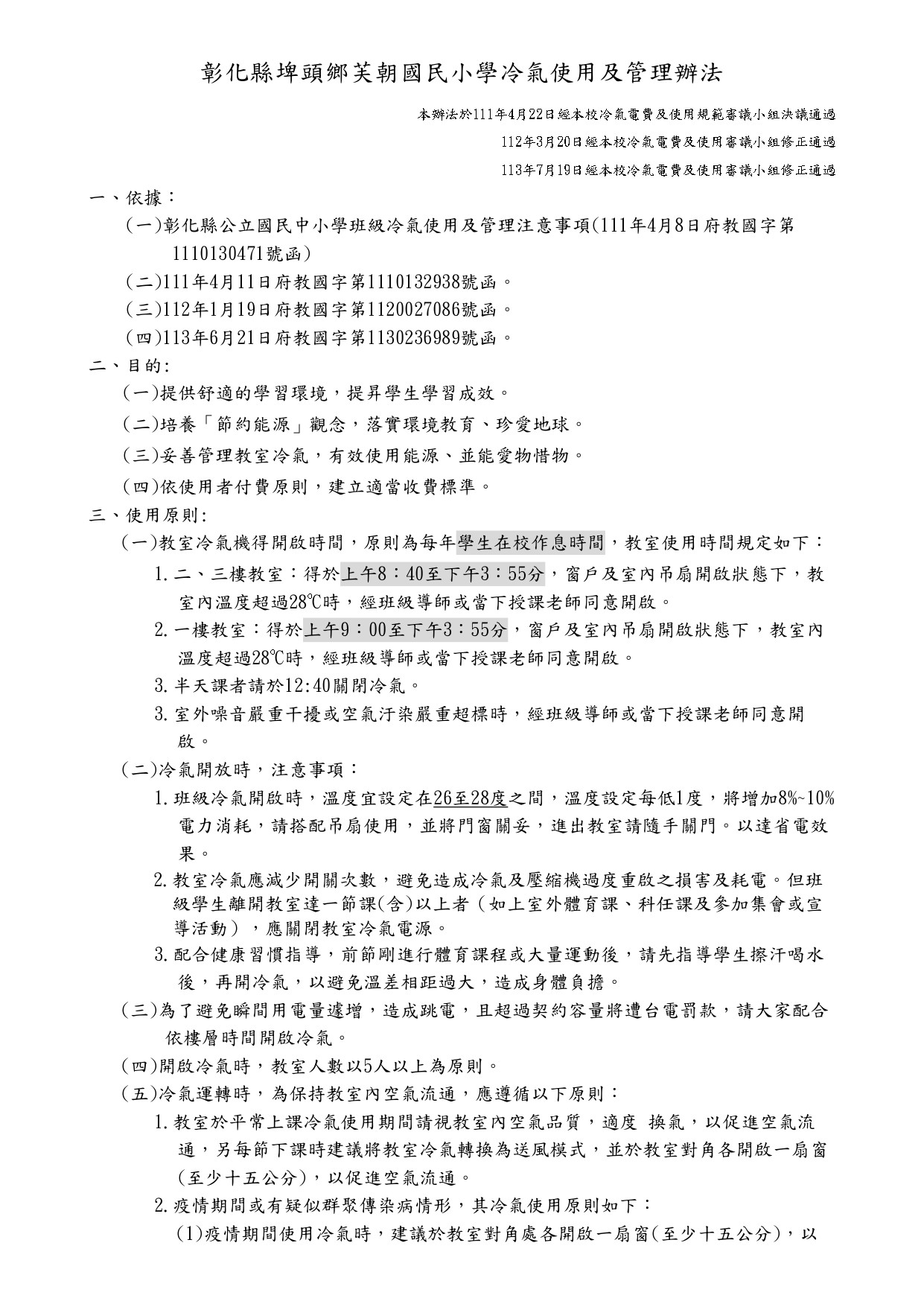 芙朝國小冷氣使用及管理辦法